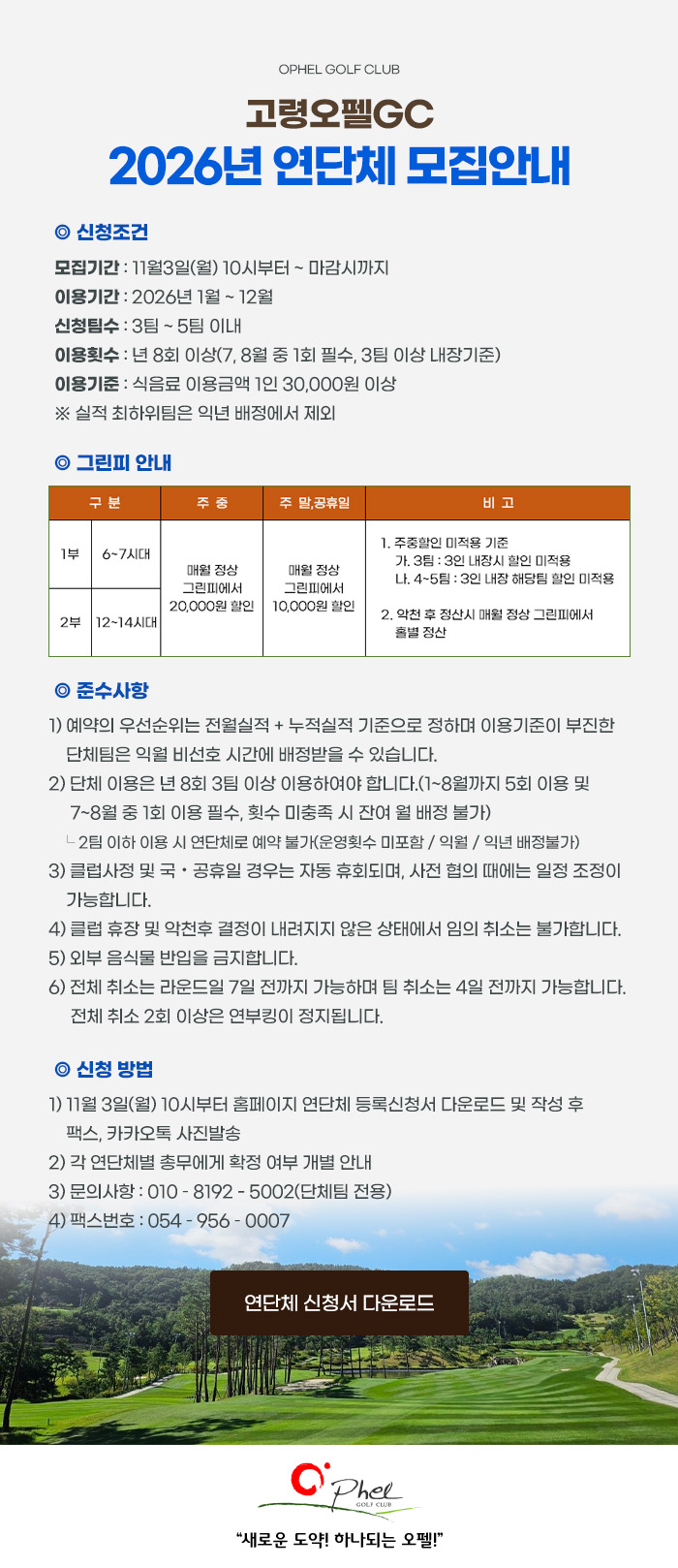[고령] 고령오펠GC 2026년 연단체 모집안내