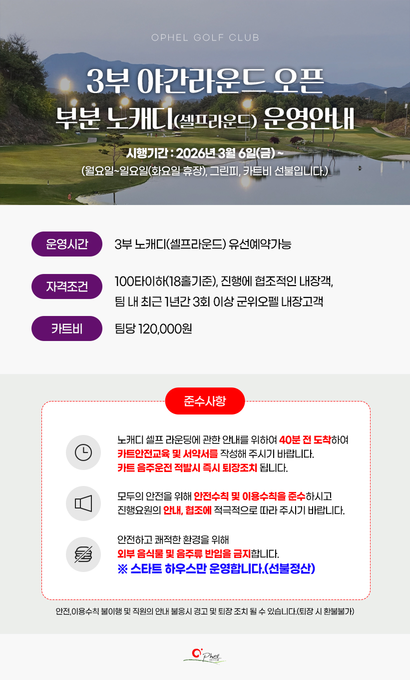 [군위] 3부 야간라운드 오픈 및 노캐디 운영안내