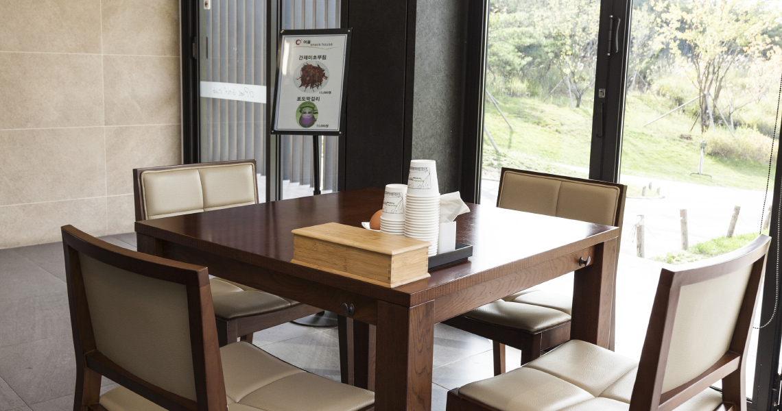 넓은 창을 통하여 보이는 시원한 풍경과 더불어 고객의 편의, 만족을 위해 마련된 서비스를 느낄 수 있는 공간입니다. 각종 음료 및 간단한 식사를 하실 수 있게 준비되어 있습니다.