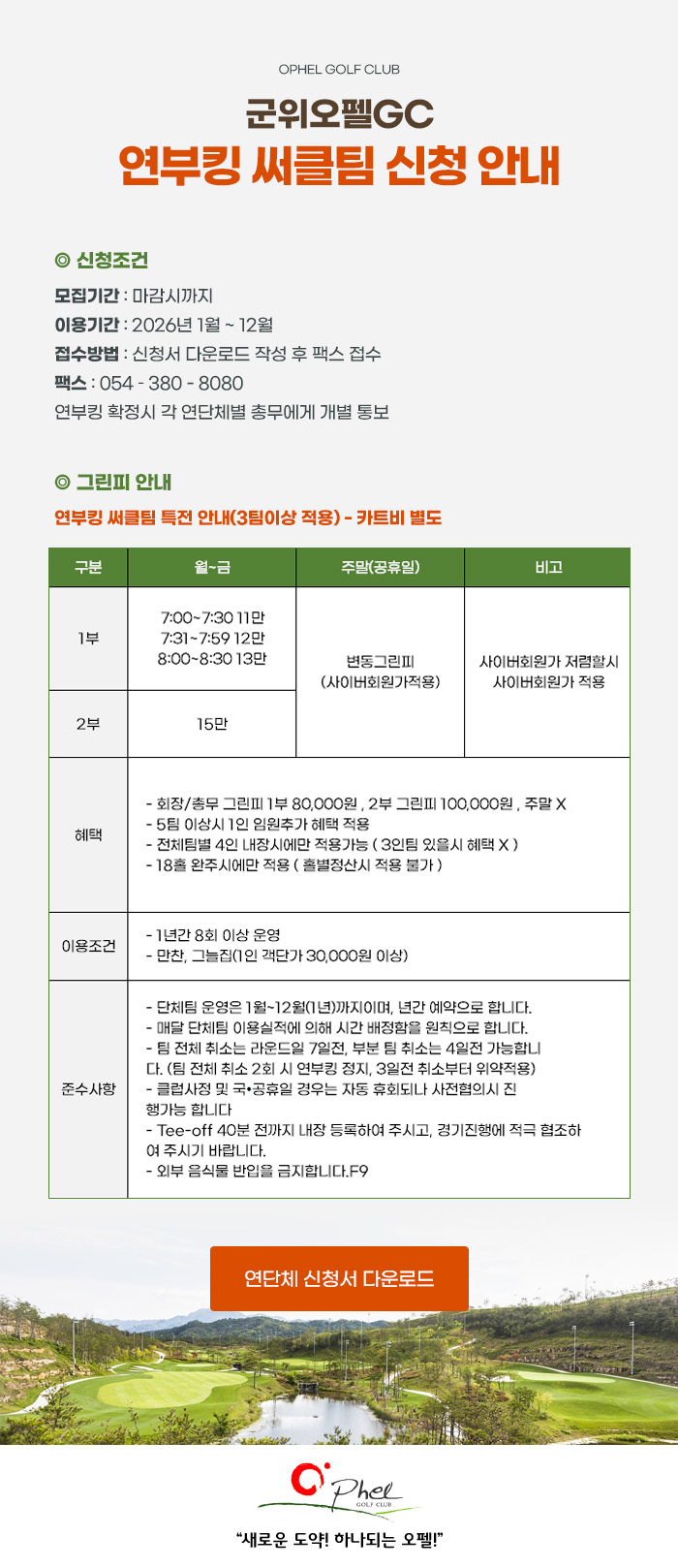 [군위] 군위 오펠GC 연부킹 단체팀 신청 안내