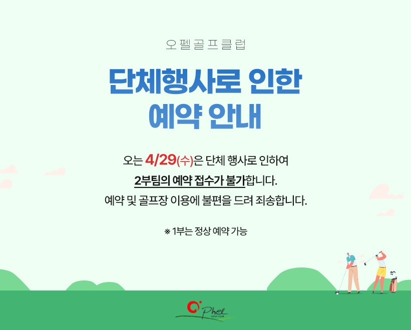 [군위] 4월29일(수) 단체행사로 인해 2부팀 예약불가